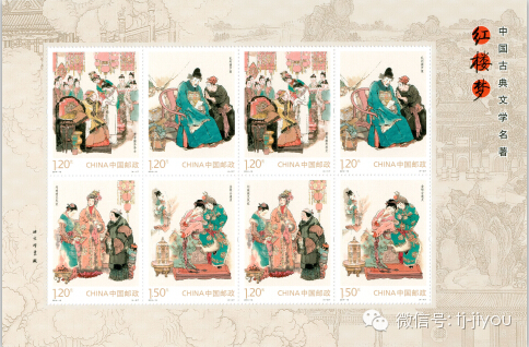 中国邮政此次共发行了普通邮票(4枚)、小型张和小版三个品种的“红楼梦”邮票。其中,4枚普通邮票中有3枚面值为1.2元,1枚面值为1.5元;名为“梦游太虚幻境”的小型张面值为6元;印有两套票的小版面值为10.2元。